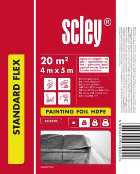 De Scley HDPE Beschermfolie Standard Flex is de ideale oplossing om oppervlakken, meubels en apparatuur te beschermen tegen stof en verfspatten tijdens renovatie- en bouwwerken. De folie heeft een afmeting van 4 x 5 meter en een dikte van 0,007 mm, wat zorgt voor een sterke, transparante en geurloze bescherming.